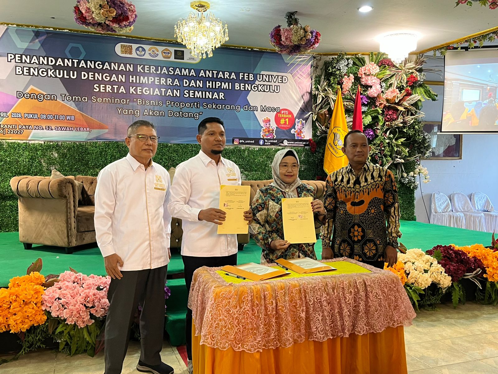 REALITAPOST.COM, BENGKULU – Fakultas Ekonomi (FE) Universitas Dehasen Bengkulu menyambut baik langkah strategis yang diinisiasi oleh Dewan Pimpinan Daerah (DPD) Himpunan Pengembang Permukiman dan Perumahan Rakyat (HIMPERRA) Bengkulu. Kerjasama ini difokuskan pada program inkubasi bagi mahasiswa agar siap terjun ke dunia bisnis sebagai pengusaha properti setelah lulus.
