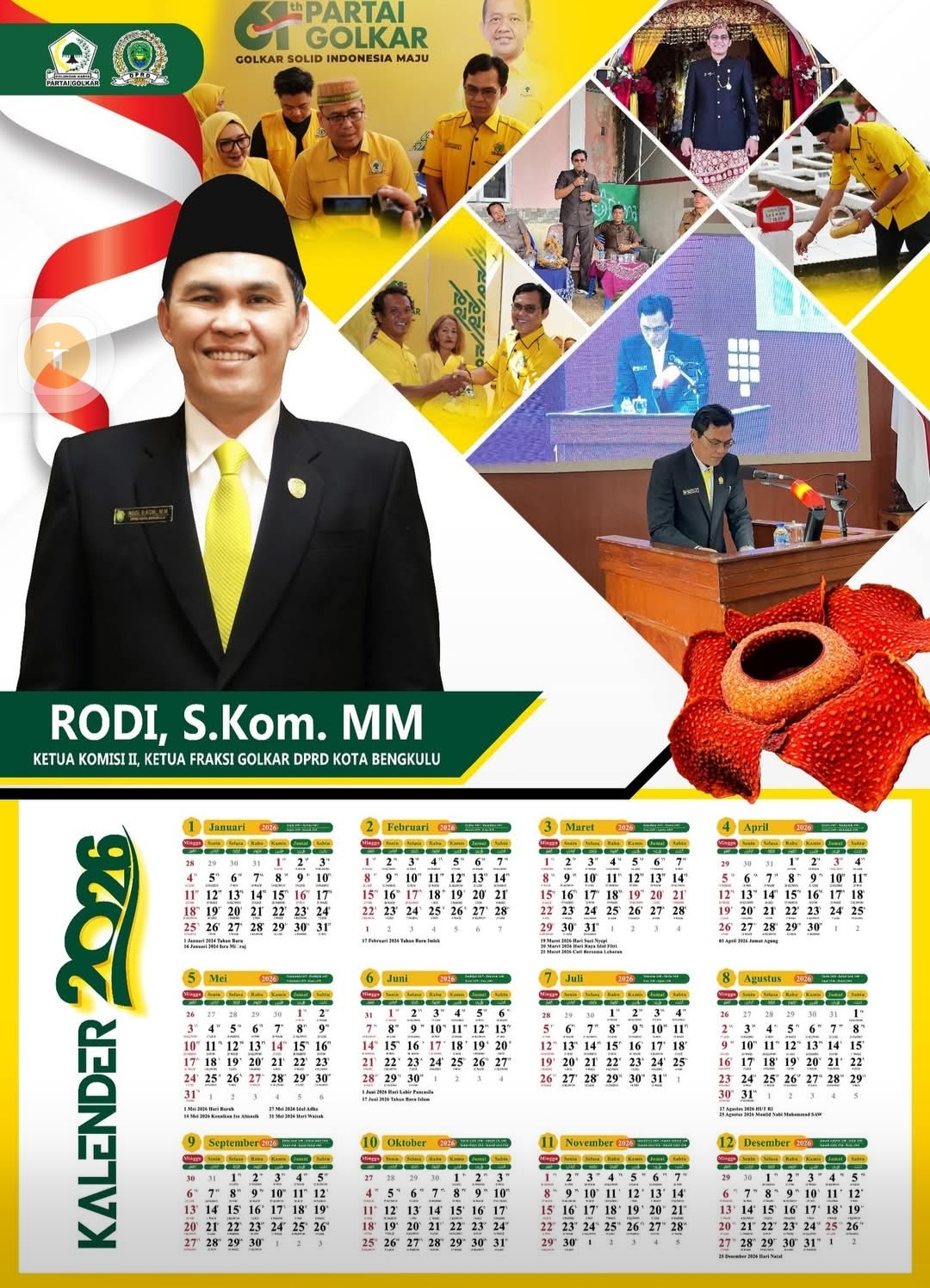 Nah bagi masyarakat Kota Bengkulu khususnya warga di Daerah Pemilihan I meliputi Kecamatan Teluk Segara, Muara Bangkahulu dan Sungai Serut akan berkesempatan melihat kalender terbaru yang akan segera dirilis Ketua Fraksi Golkar DPRD Kota Bengkulu, Rodi, yang akan dibagikan pada momen reses yang akan digelar dalam waktu dekat ini.
