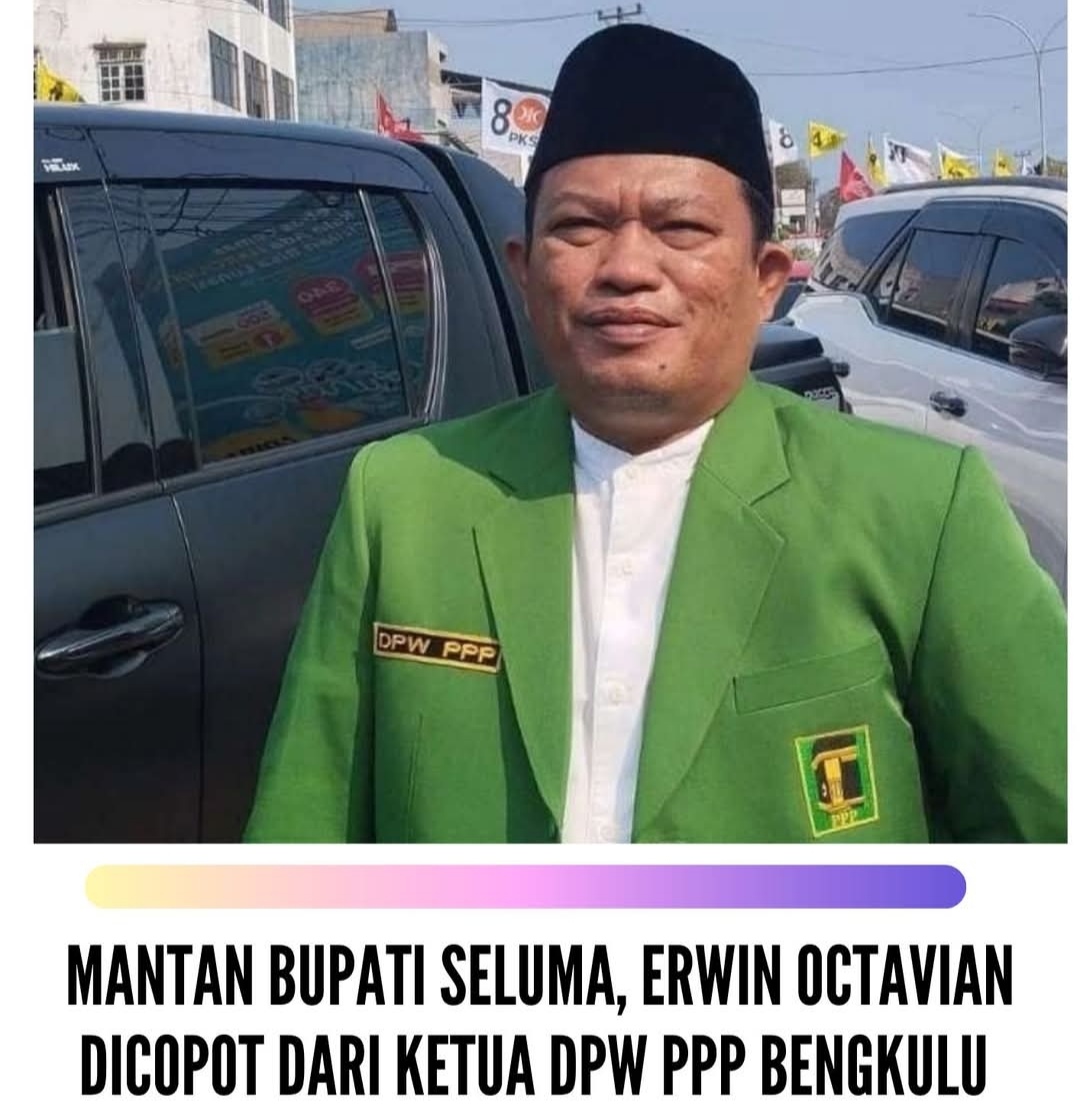 Bengkulu, Realitapost.com — Mantan Bupati Seluma Erwin Octavian diberhentikan dari jabatan Ketua DPW Partai Persatuan Pembangunan (PPP) Provinsi Bengkulu.