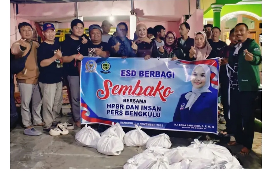 Bengkulu,Realitapost.com — Sebagai bentuk kepedulian dan kemitraan terhadap insan pers, Legislator DPR RI Erna Sari Dewi membagikan paket sembako kepada wartawan Bengkulu pada Sabtu (8/11/20255) sore di kediaman salah satu anggota Persatuan Wartawan Indonesia (PWI) Provinsi Bengkulu.