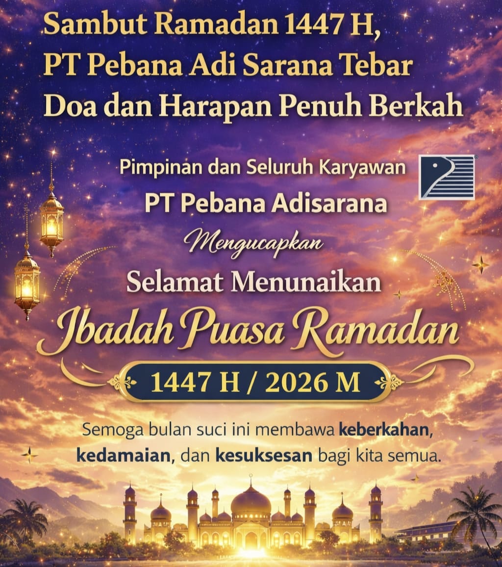 Realitapost.com – Menyambut bulan suci Ramadan 1447 Hijriah / 2026 Masehi, keluarga besar PT Pebana Adi Sarana menyampaikan ucapan selamat menunaikan ibadah puasa kepada seluruh masyarakat, pelanggan, serta mitra kerja.