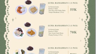 Untuk kebutuhan individu, Luma Kraving menghadirkan Luma Ramadan 1, 2, dan 3 (1 Pax) dengan harga mulai dari Rp 55.000 hingga Rp 75.000. Setiap paket sudah dilengkapi menu lengkap berbuka, seperti nasi pilihan lauk khas Nusantara, kurma, gorengan, serta minuman segar Es Kuwut Luma yang siap memanjakan lidah pelanggan.