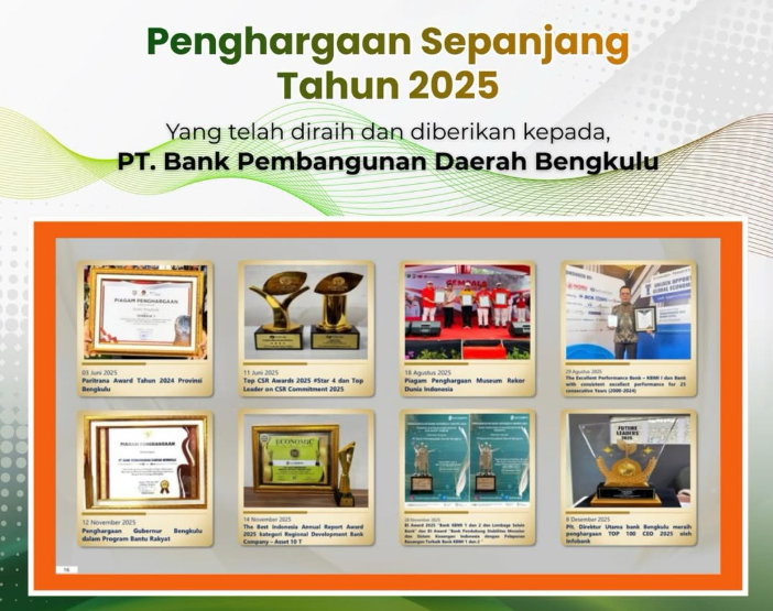 Ia menambahkan bahwa delapan penghargaan ini bukan sekadar simbol prestasi, melainkan bukti nyata dari hasil transformasi berkelanjutan dan komitmen bank dalam mendorong ekonomi daerah. Hingga akhir 2025, Bank Bengkulu tercatat mengalami pertumbuhan positif dengan penyaluran kredit yang meningkat 5,45 persen menjadi Rp 7,816 triliun dan perolehan laba bersih mencapai Rp 135,146 miliar.