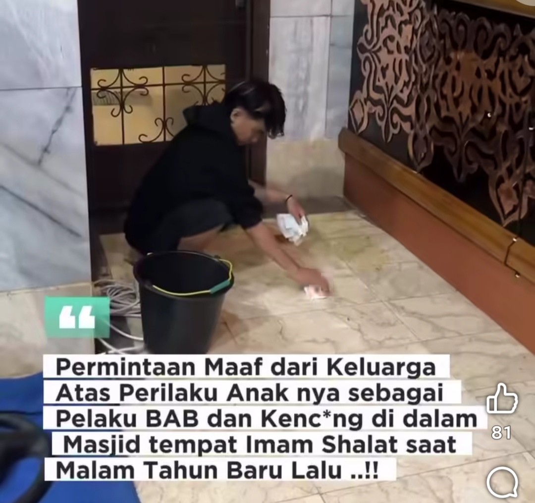 “Kami sangat menyayangkan kejadian ini, apalagi dilakukan di tempat suci. Pelaku sudah kami amankan dan kami minta langsung membersihkan sisa kotorannya saat itu juga,” ujar salah satu pengurus masjid.